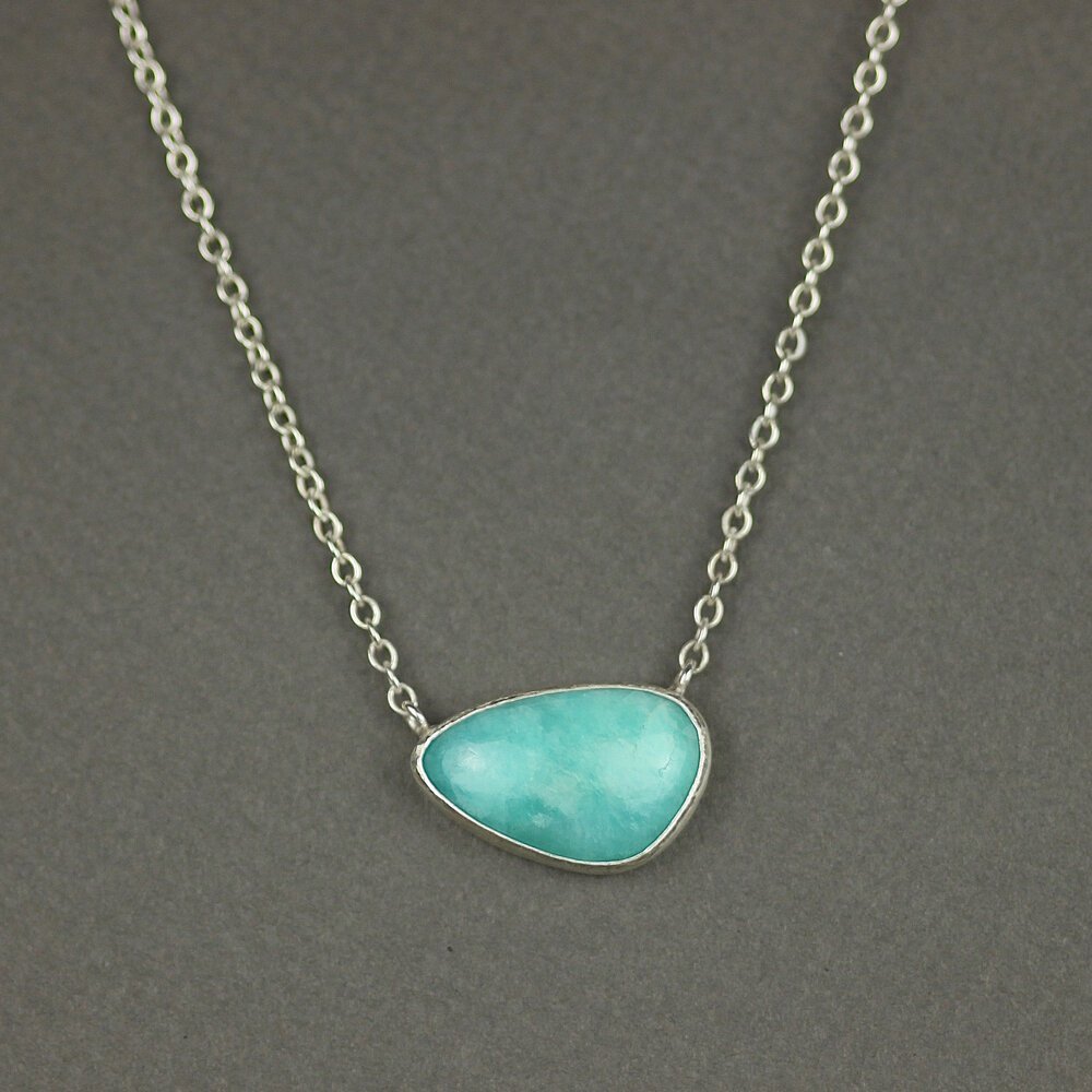 Just writing a little post to share with you a piece I made for a lovely customer earlier this summer. She loved it so much that she ordered one for her best friends birthday too. It’s one of those pieces I feel I can’t take that much credit for though as the true beauty of this necklace lies in the transfixing glow of the amazonite stone. I’ve not been that drawn to this gemstone in the past but this selection of premium quality amazonite I got on my recent stay in Pushkar completely mesmerised me. The luminosity of these stones takes me immediately to some fantasy island with the brightest sky and the clearest blue waters. It’s basically a holiday in a gemstone! It’s a gemstone that has been treasured since ancient times and it’s not surprising. You can find lots of writings online about it’s purported metaphysical properties but I just know that gazing pon this beauty has a palpable effect on my state of mind. For me, it’s a stone of calming positivity and brings about that state of simple contentment that the first weeks of summer fill you with. And I always want to be reminded of those blessed weeks of the year.